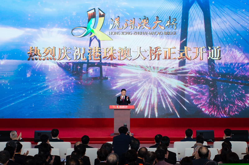 10月23日上午,港珠澳大橋開通儀式在廣東省珠海市舉行。中共中央總書記、國家主席、中央軍委主席習(xí)近平出席儀式,宣布大橋正式開通并巡覽大橋。